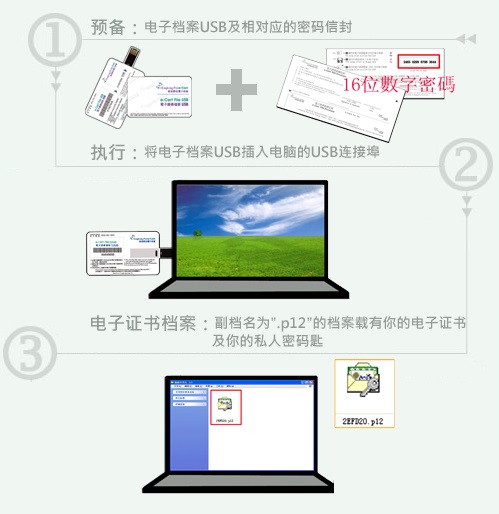 | 怎样才可使用在电子证书档案USB内的电子证书? | ||||||||||||||||||||